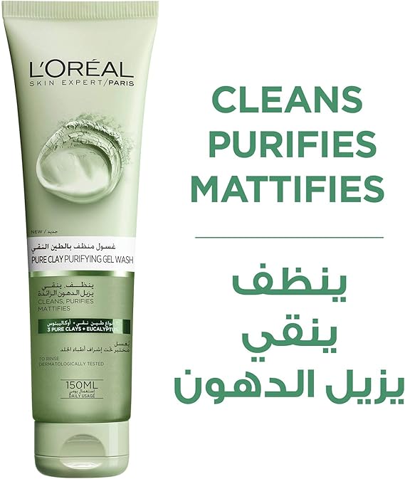 L’Oréal Paris L'Oréal Paris Skin Care Pure Clay Cleanser Green, Purifies & Matifies, 150ml